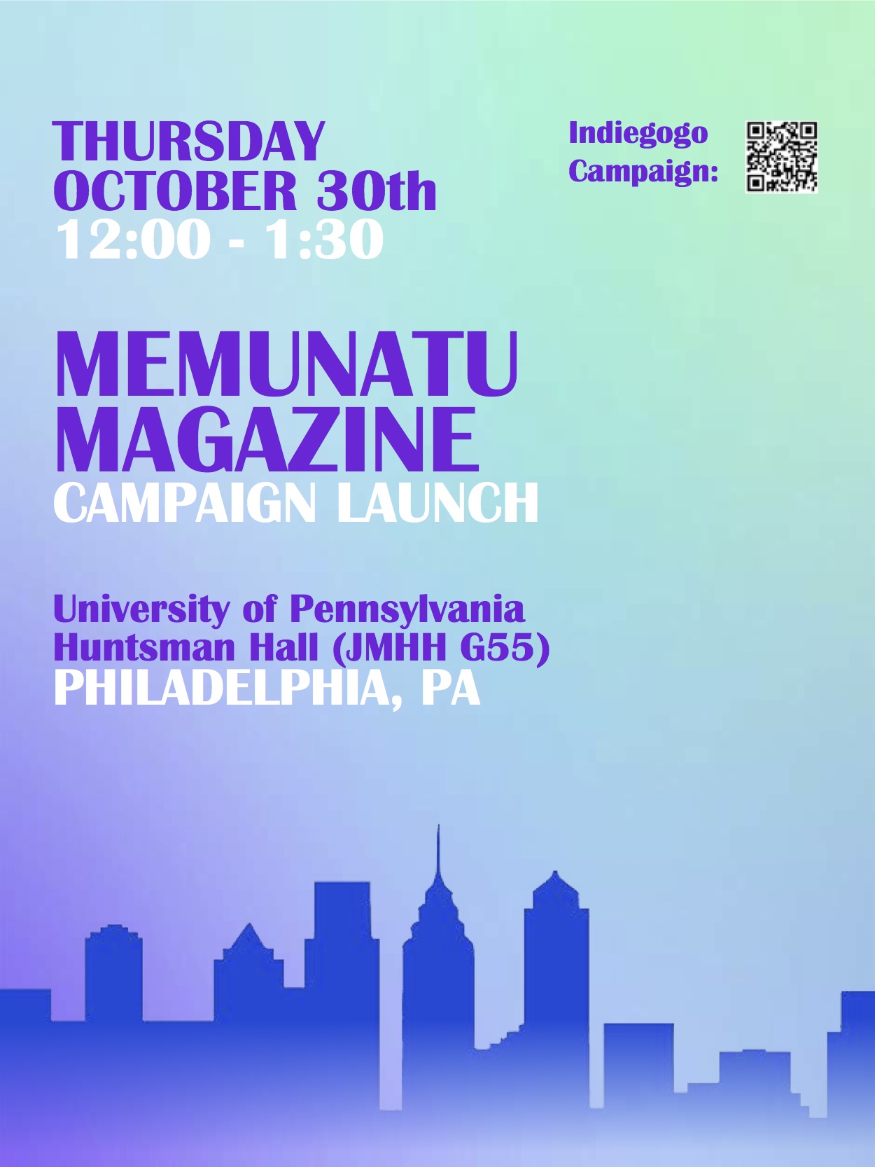 Come join Memunatu Magazine on October 30th as we launch our Indiegogo Campaign! Memunatu is a classroom magazine for secondary school girls in West Africa that has been recognized as an Echoing Green Semifinalist, Harvard Business School New Venture Competition Semifinalist, Dell Social Innovation Fellow, Wharton VIP company, and more! Mariama Kabia, the Penn alum who co-founded the startup is coming to campus to talk about Memunatu, introduce the campaign, and provide opportunities for you to get involved!